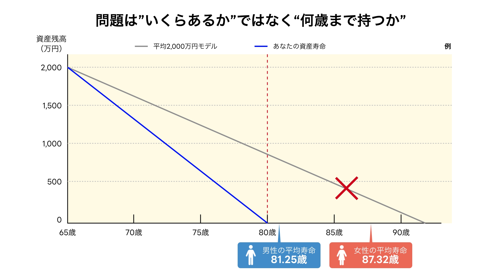 重要なのは「いくら持っているか(ストック)」ではなく、「今の生活水準であと何年持つか(期間)」で資産を管理することだ。これを私は「資産寿命」と呼んでいる。